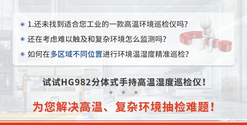 HG982手持分体式高温温湿度巡检仪是一款专为高温工业环境需求设计的高精度测量仪器。