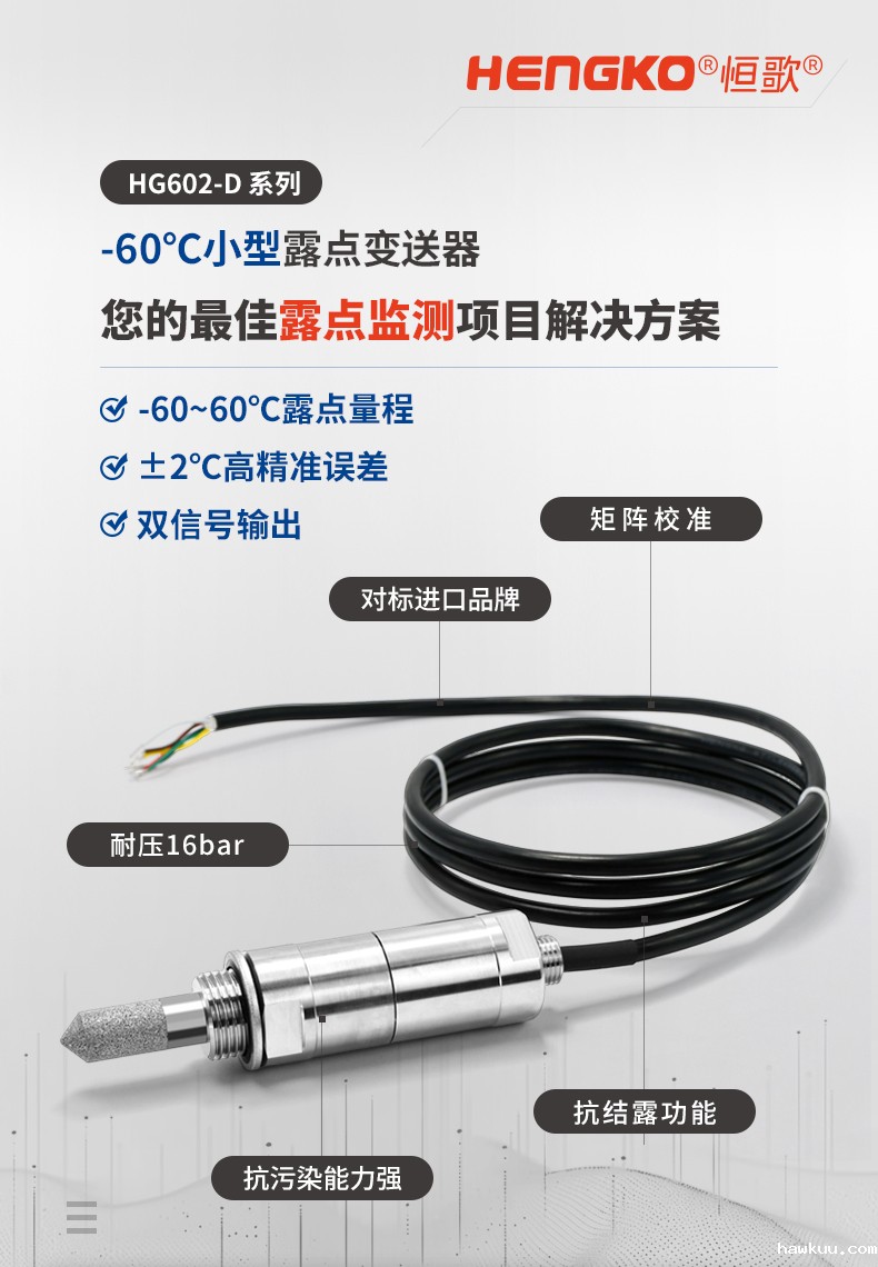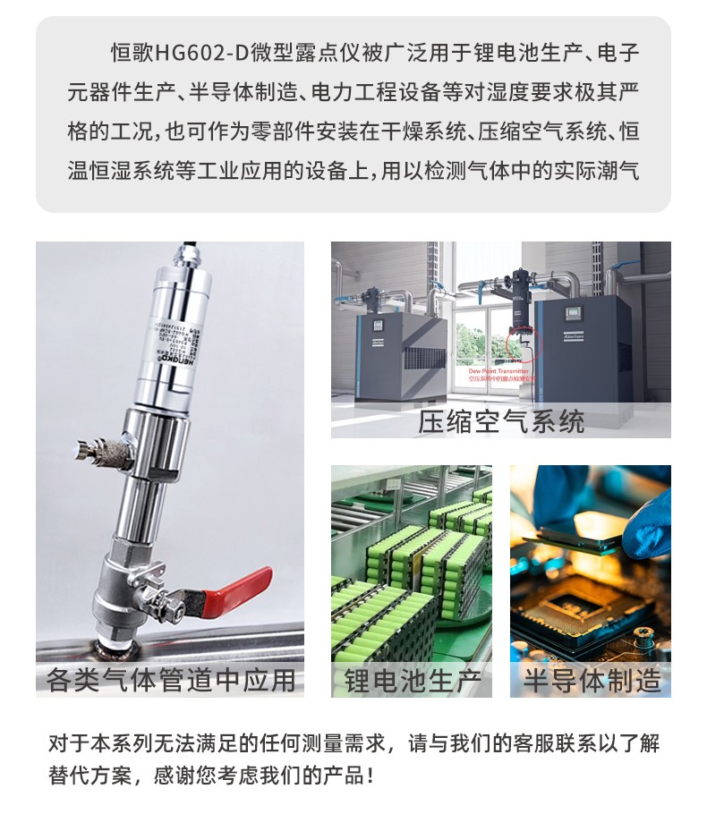 HG602-D微型露点变送器专为极干燥环境中的露点测量而设计,可提供快速、稳定和可重复的测量性能具有一定的抗干扰、耐腐蚀、防坐防污染的性能。