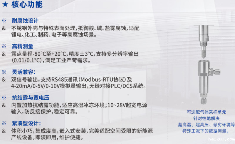 ★经市场验证,HG602-G 耐腐蚀型露点仪能有效抵御工业化学腐蚀与盐雾侵蚀,其性能与进口高端产品不相上下,是一款极性价比的产品。