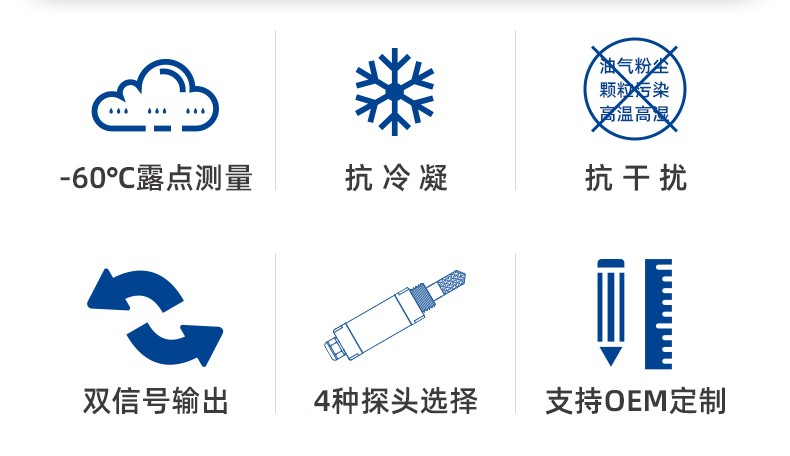 &16bar耐压设计,316L不锈钢探头防护,抗冷凝、耐高温,适配压缩气体、真空干燥、工艺气体等对湿度有极高要求的环境。