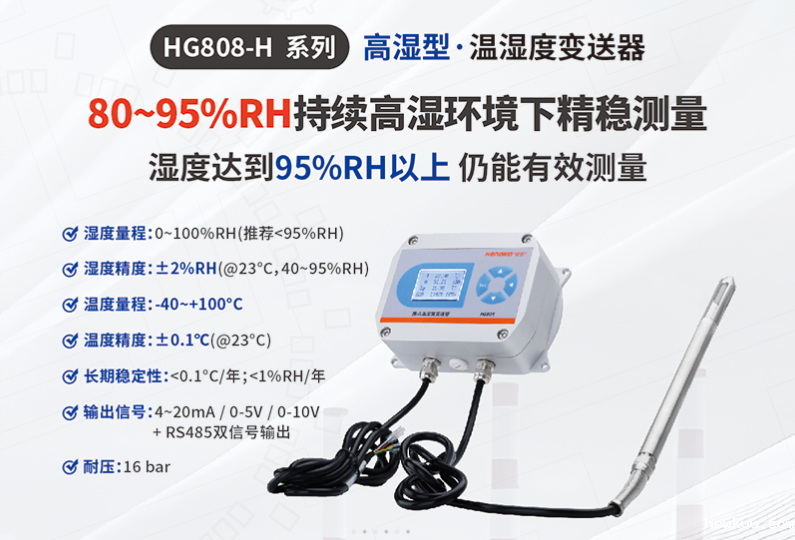 HG808-H高湿型温湿度变送器系列是一款专业应对工业高湿环境而研发设计的高精度温湿度变送器。