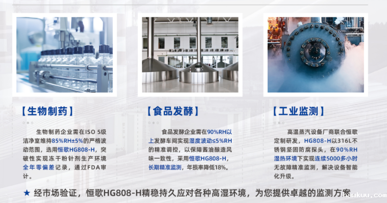 具有长期稳定的高精度湿度感知能力和优秀的耐腐蚀能力,配有坚固的铸铝外壳和不锈钢传感器组件,其最高湿度范围可达98%RH,在工业高湿(相对湿度专为在持续高湿度(>85%RH)和冷凝条件下进行精确且长期稳定的测量而设计,适用于要求苛刻的气候控制。