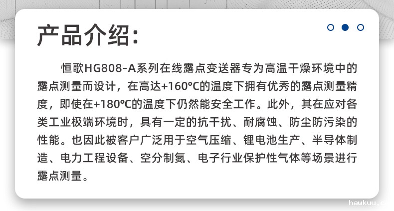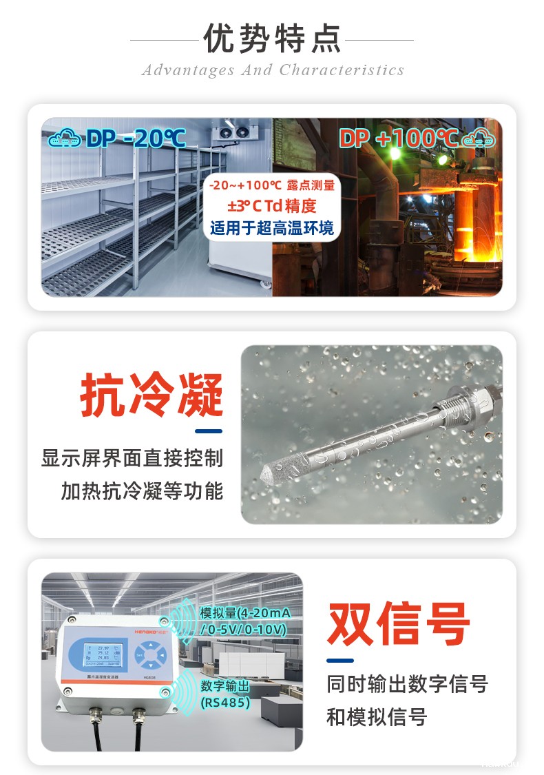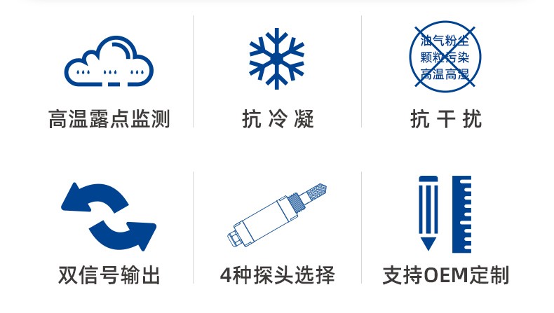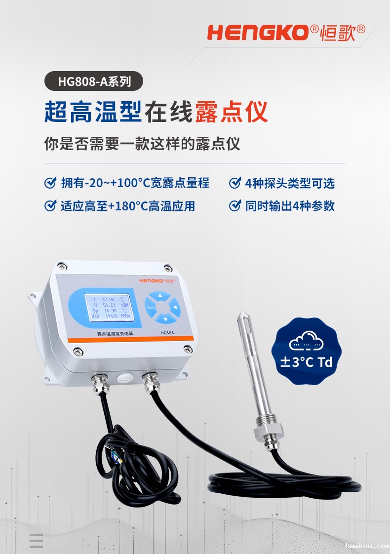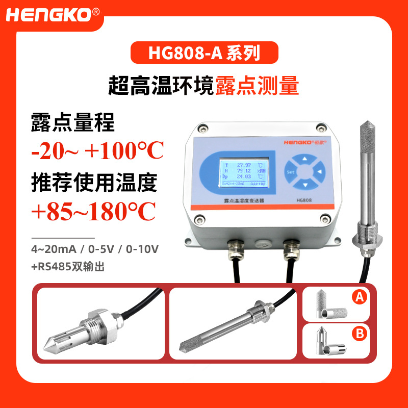 &耐180°C高温传感器,露点量程-20~100°C,覆盖+80~+180°C高温范围,长期稳定性行业领先。
